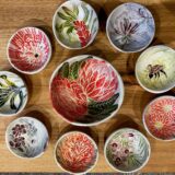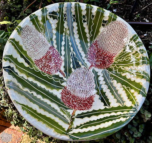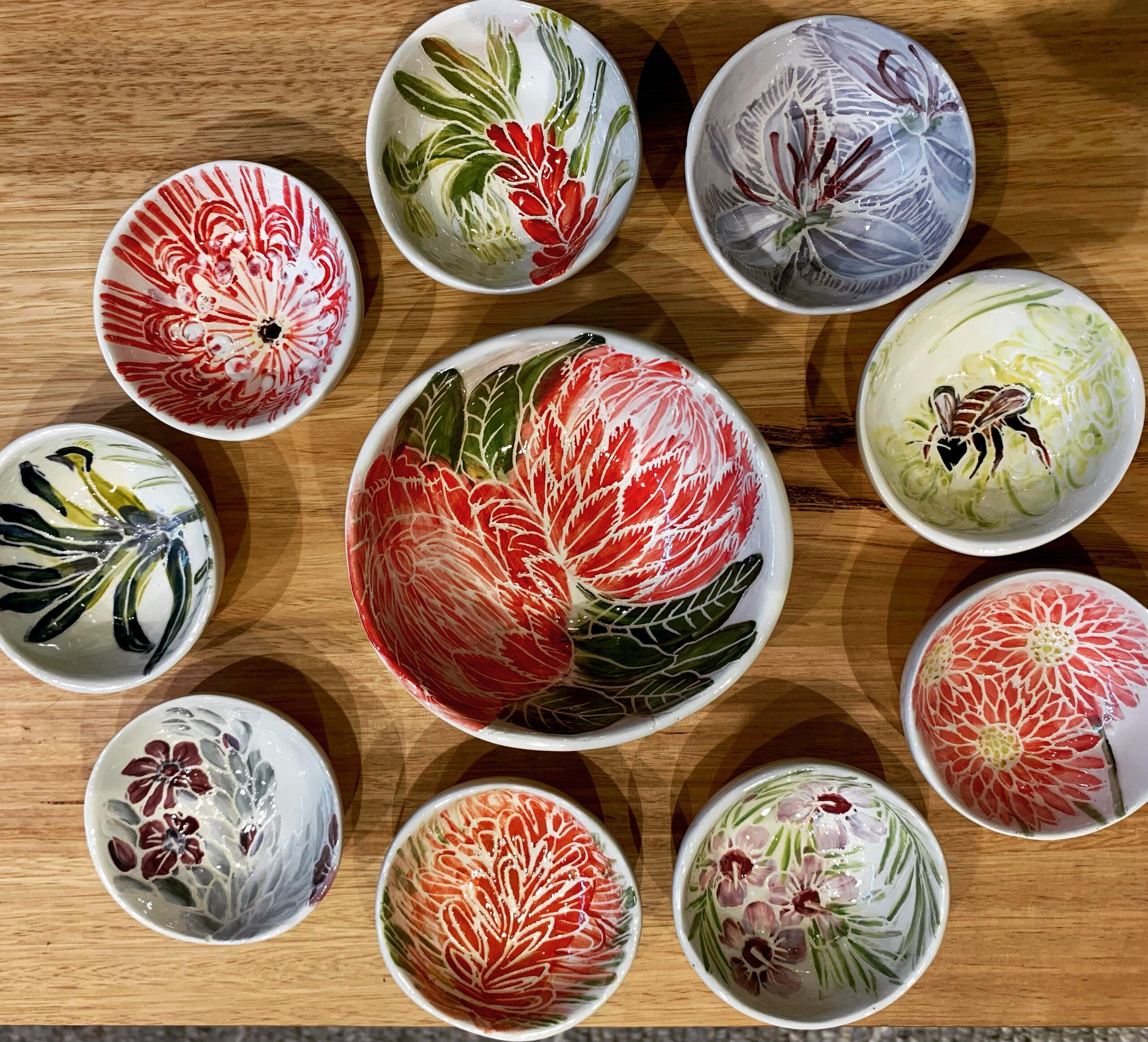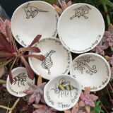 Ceramic Items are either slip cast and hand painted or hand built and impressed with natural plant and organic matter.